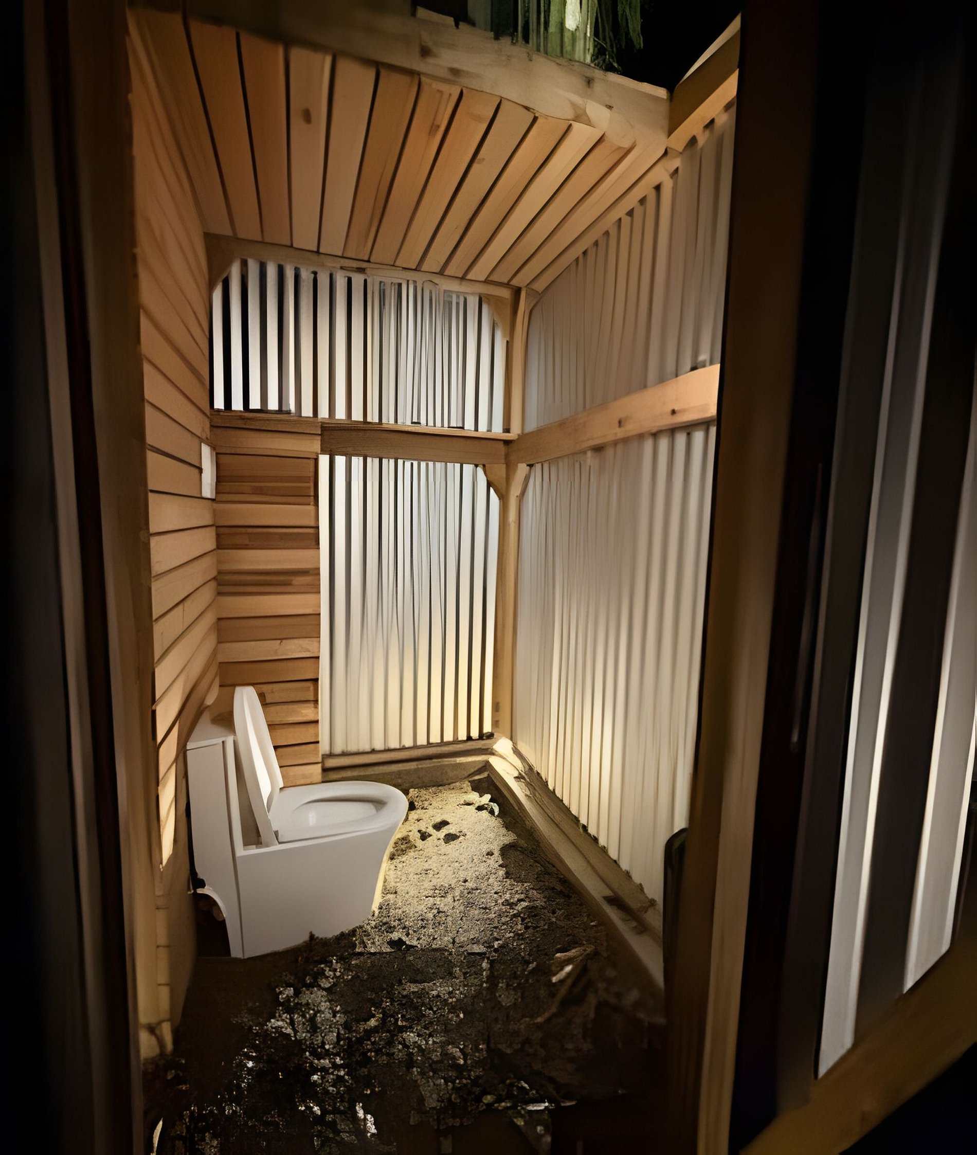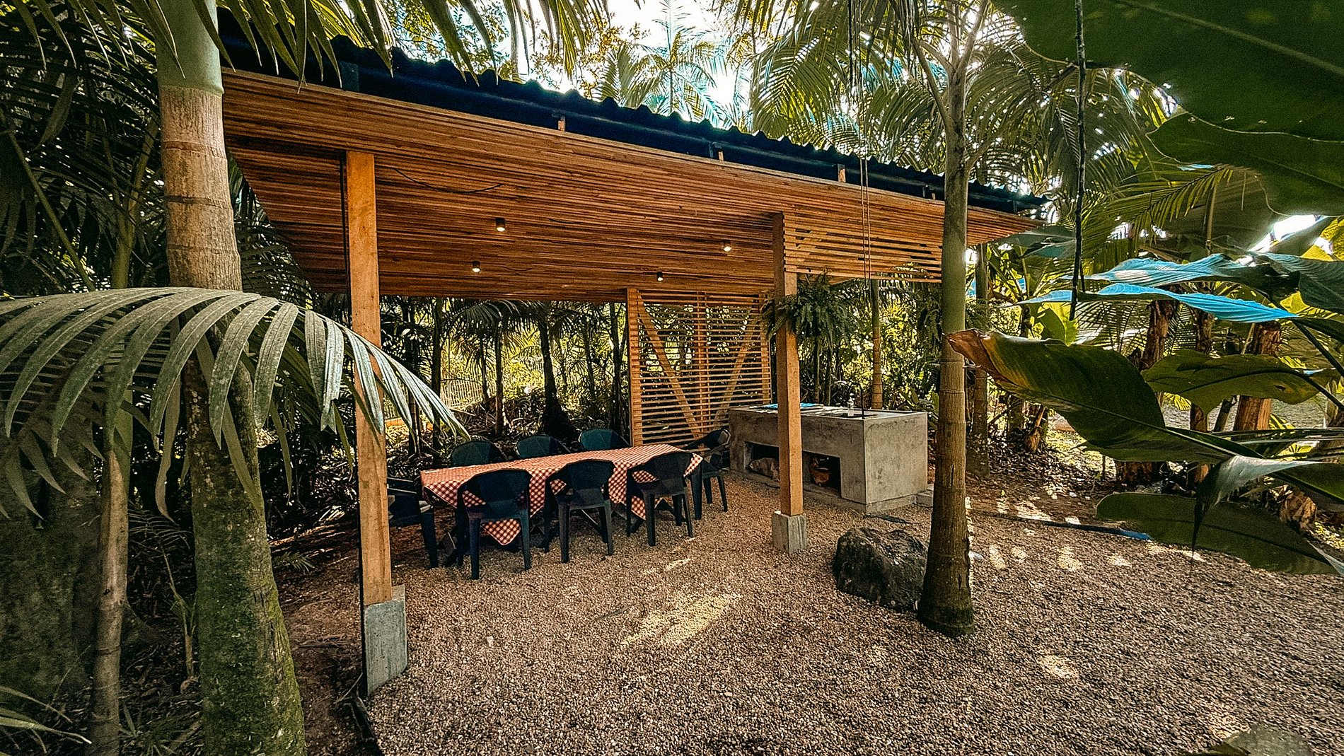 E para quem busca algo diferente, o Banho da Mata: um banheiro especial, sem teto, onde o céu e as copas das árvores fazem parte da experiência.