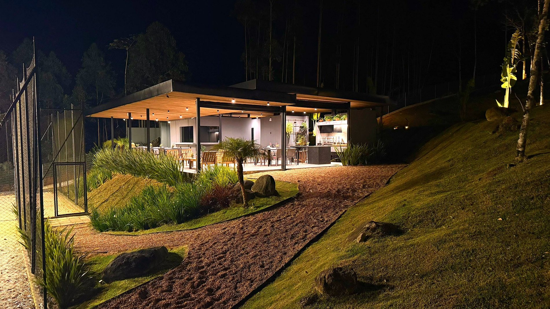 Durante a hospedagem, você tem acesso total ao parque: trilhas, mirantes, riachos, lagos, quadras, playground, piqueniques e muito mais.