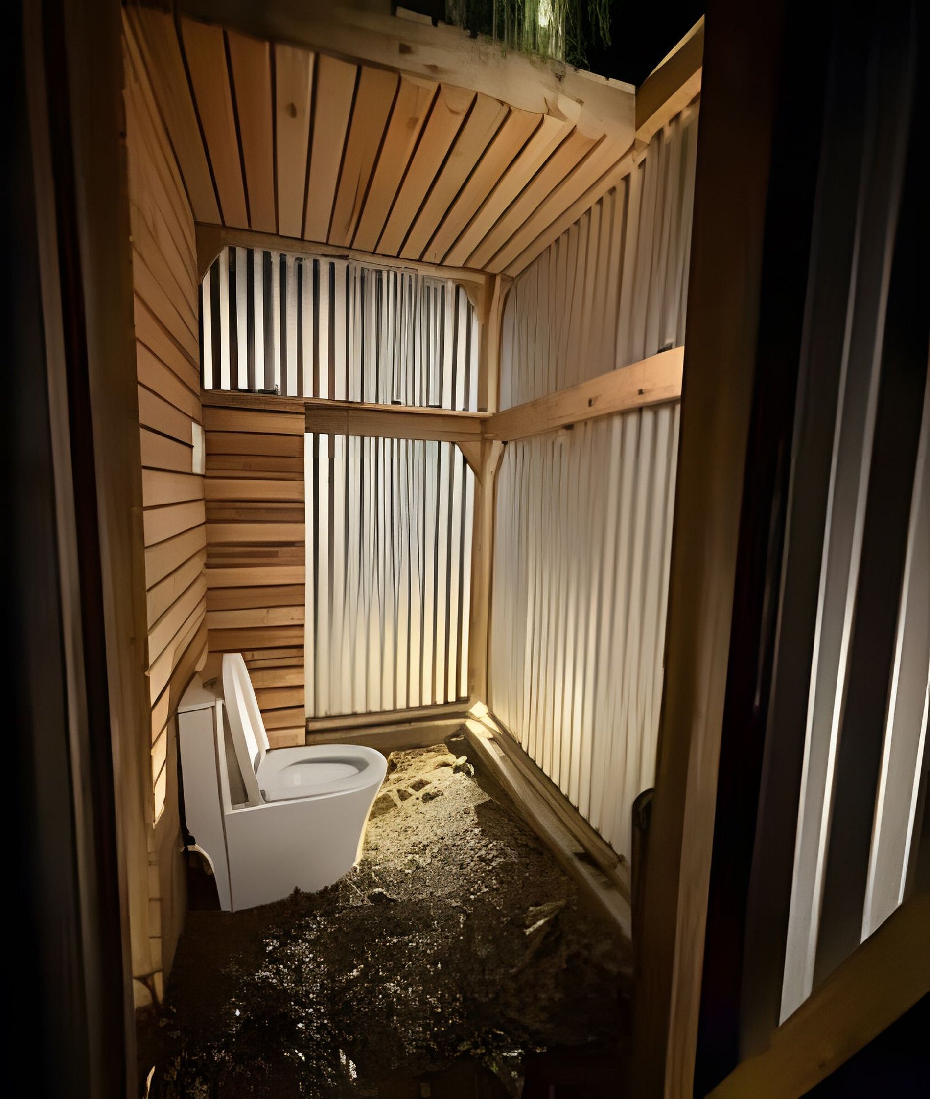 E para quem busca algo diferente, o Banho da Mata: um banheiro especial, sem teto, onde o céu e as copas das árvores fazem parte da experiência.